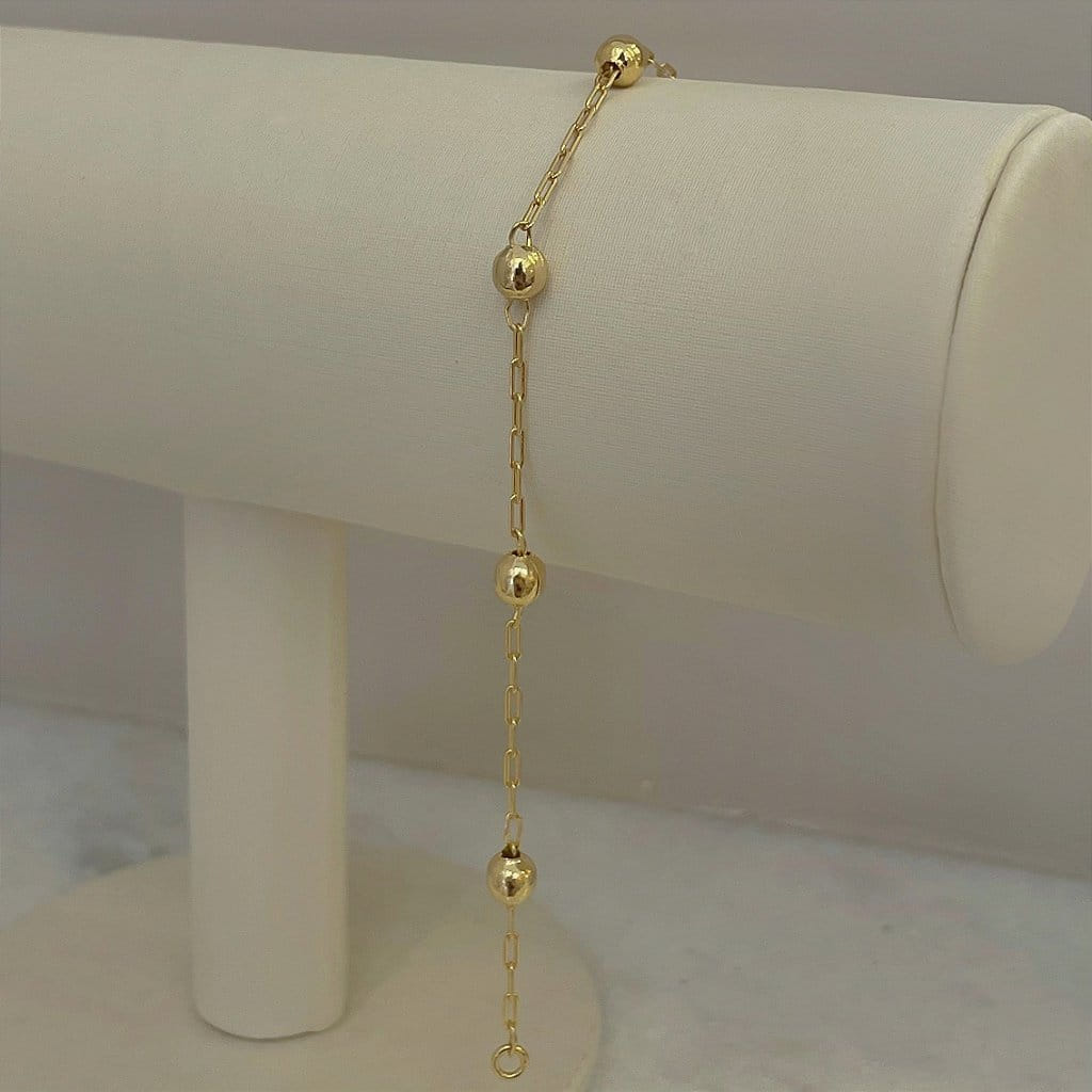 Folheada a Ouro 18K, o acabamento polido destaca o brilho da corrente e das bolas, conferindo durabilidade e um toque luxuoso à peça. Ideal para o uso diário ou para ocasiões especiais, a pulseira pode ser usada sozinha para um visual minimalista ou combinada com outros acessórios para composições mais elaboradas.
