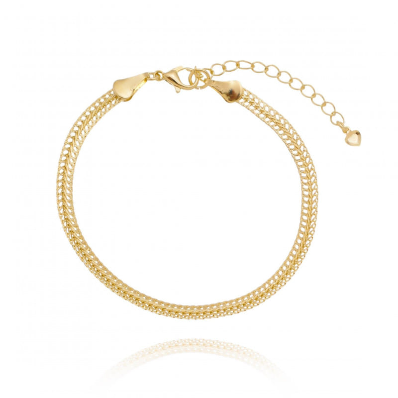 Pulseira Corrente Trançada Laminada Folheado a Ouro 18K