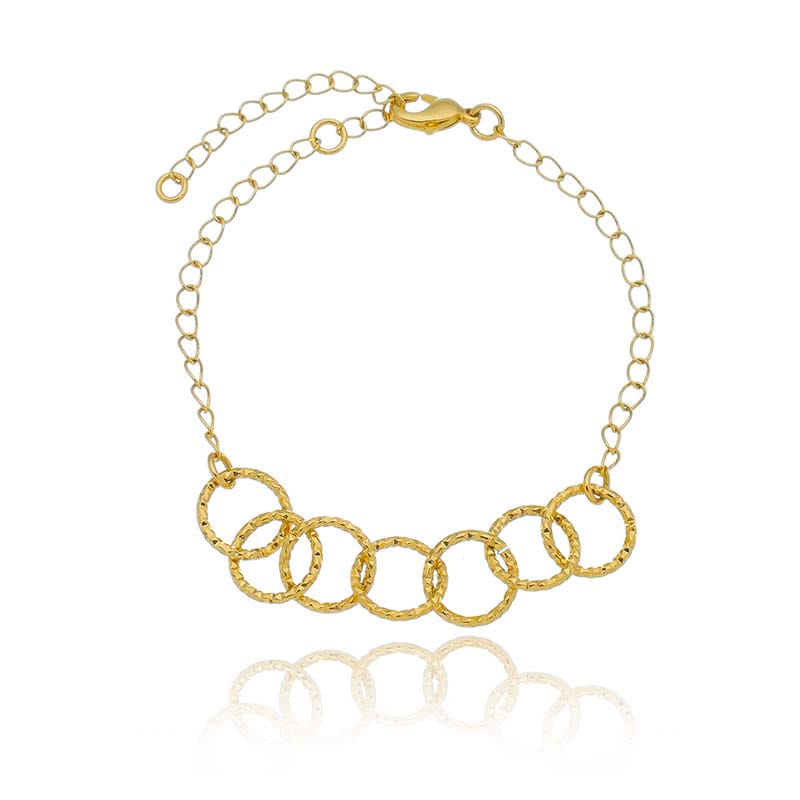 Pulseira Correntinha E Elos Redondos Trabalhados Unidas Folheado a Ouro 18K