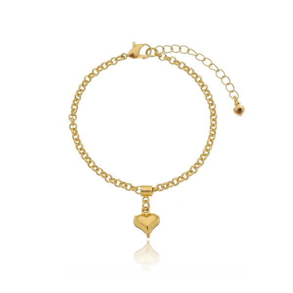 Pulseira Elo Português Coração Abaulado Passante Redondo Folheado a Ouro 18K