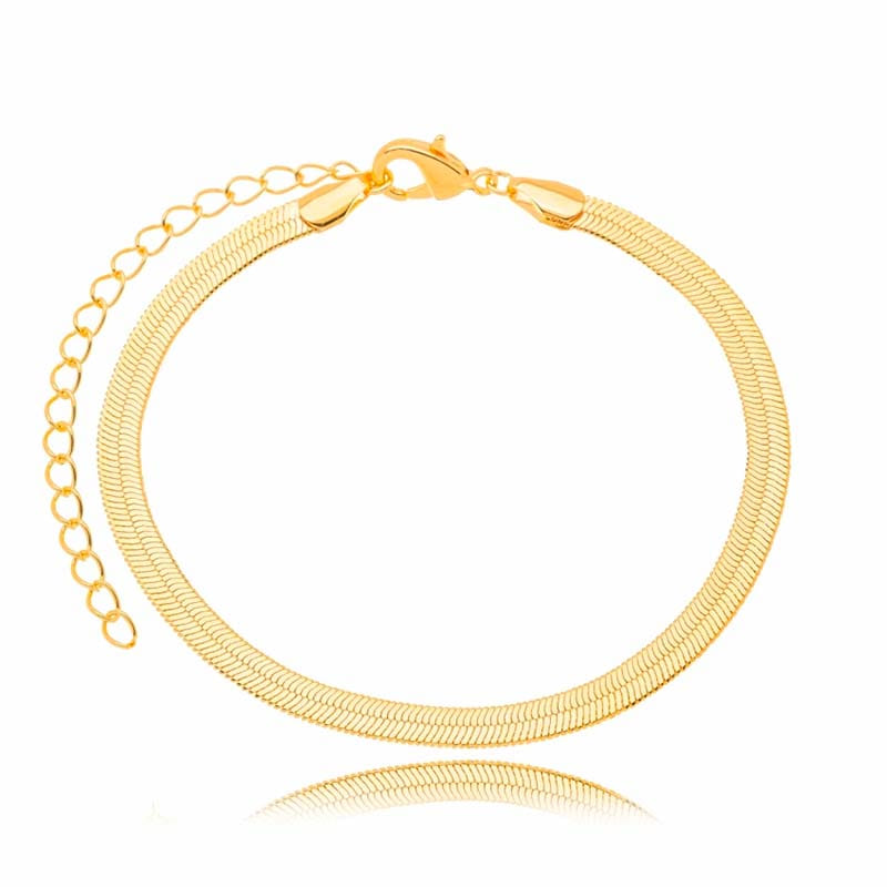 A Pulseira Fita Heringbone, folheada a Ouro 18K, é uma peça de joalheria que exala sofisticação e elegância. Com seu padrão herringbone clássico, esta pulseira proporciona um visual distinto e requintado, ideal para quem busca um acessório que combine luxo e estilo.