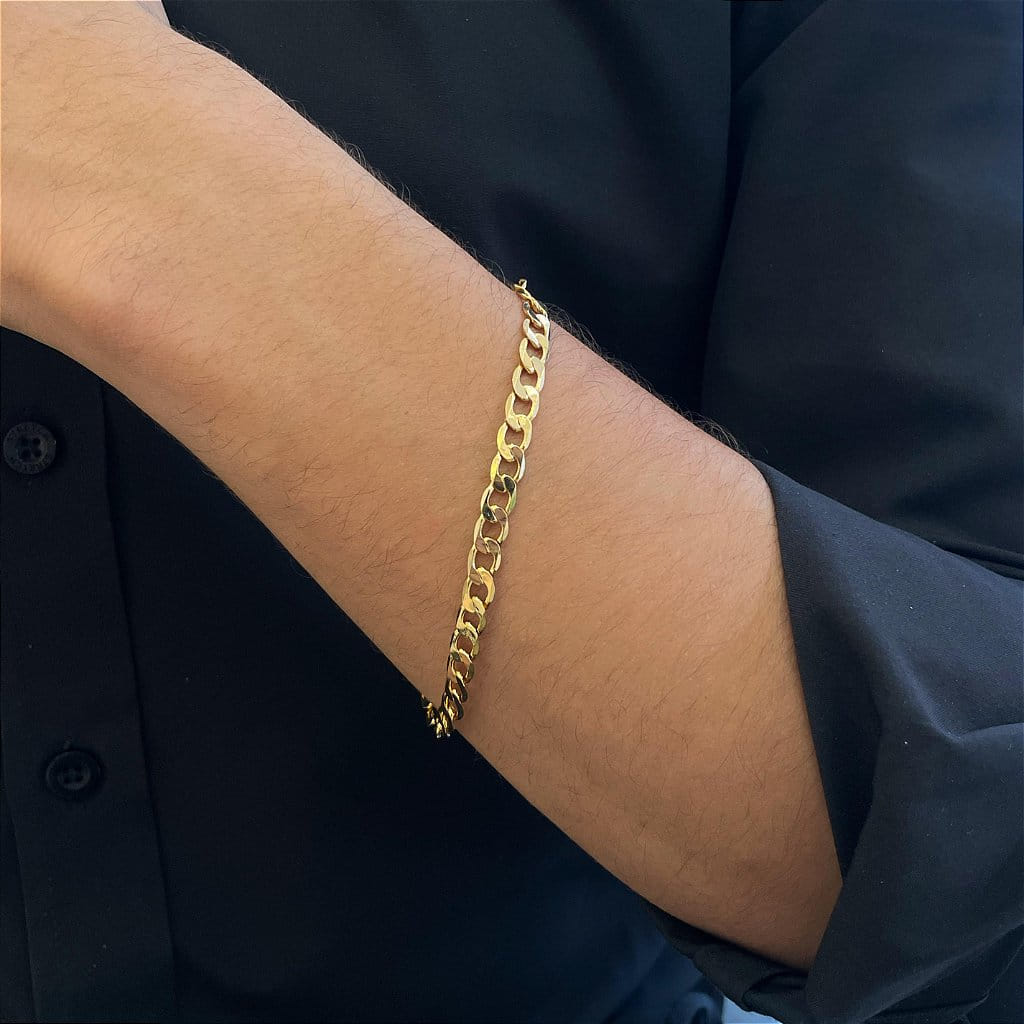 Folheada a Ouro 18K, o acabamento polido garante um visual luxuoso e duradouro, tornando a peça perfeita tanto para o uso diário quanto para ocasiões especiais. Versátil, pode ser usada sozinha como destaque ou combinada com outras pulseiras para compor um mix moderno e estiloso.