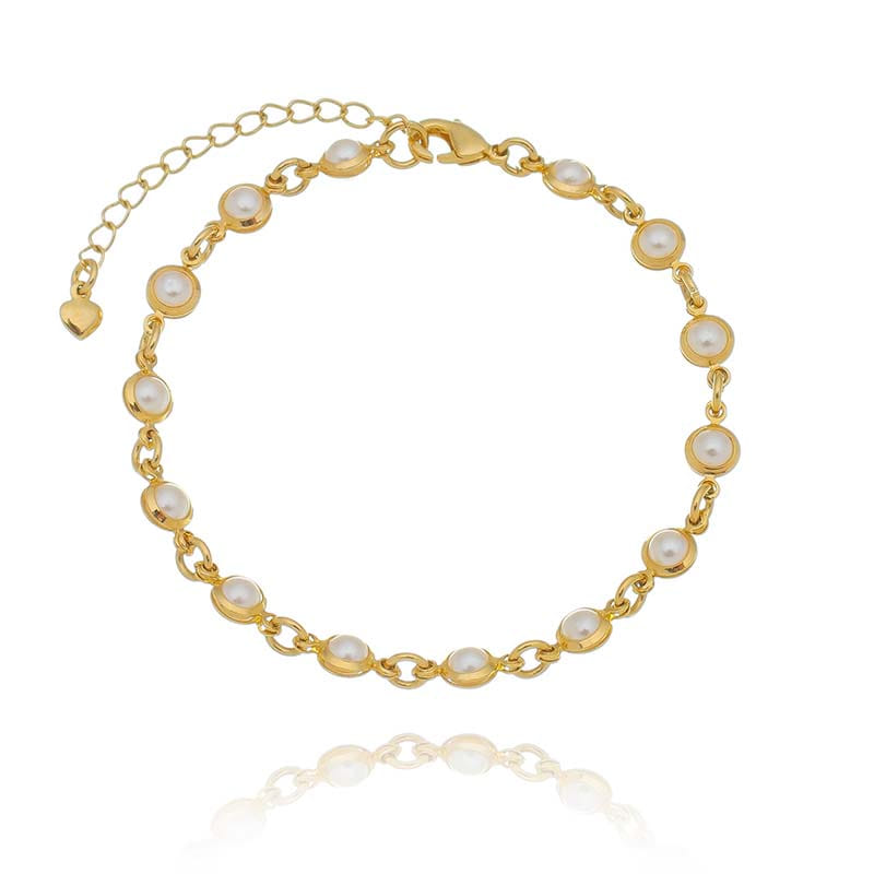 Pulseira Pérolas Envoltas Chaton Folheado a Ouro 18K