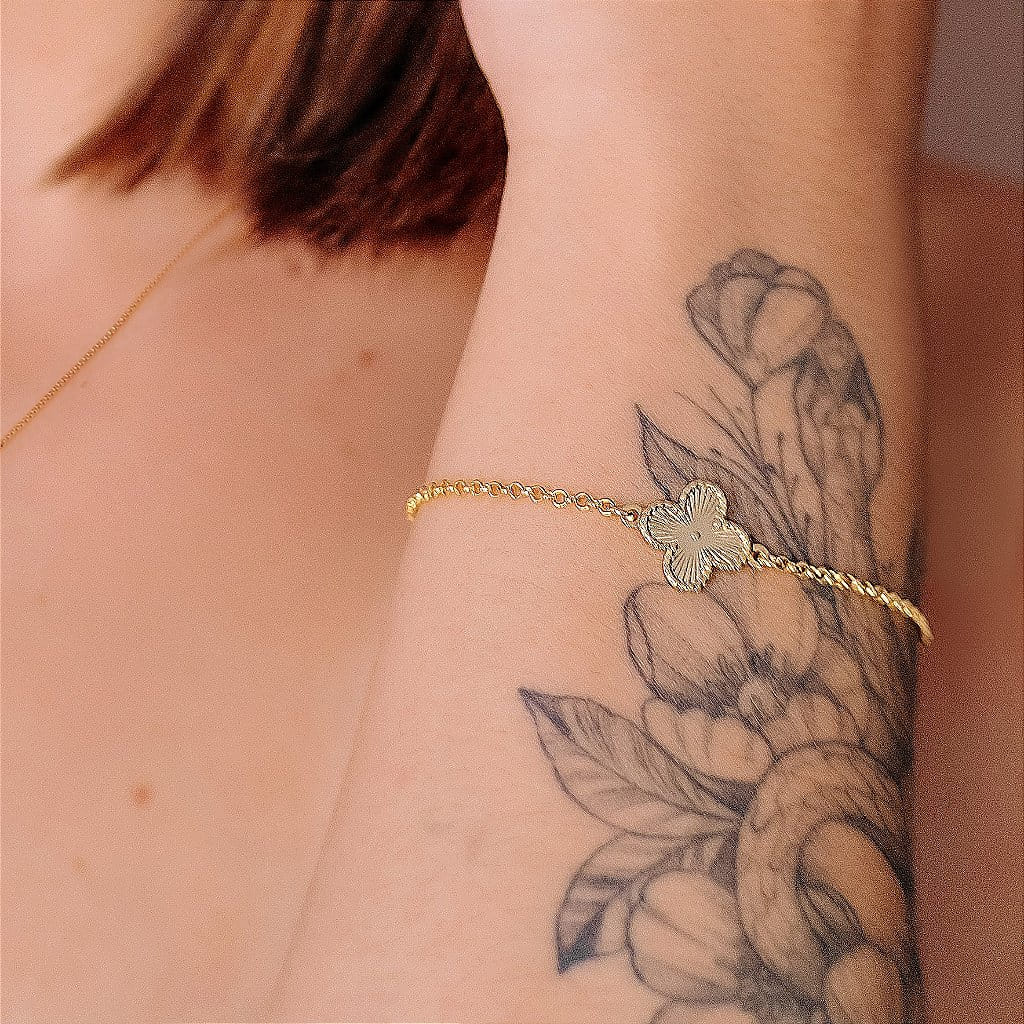 Esta charmosa pulseira trevo vintage Alhambra é perfeita para quem busca um acessório elegante e atemporal. Folheada a ouro 18k, a pulseira é confeccionada com materiais de alta qualidade, ideal para adicionar um toque especial e sofisticado ao seu visual.
