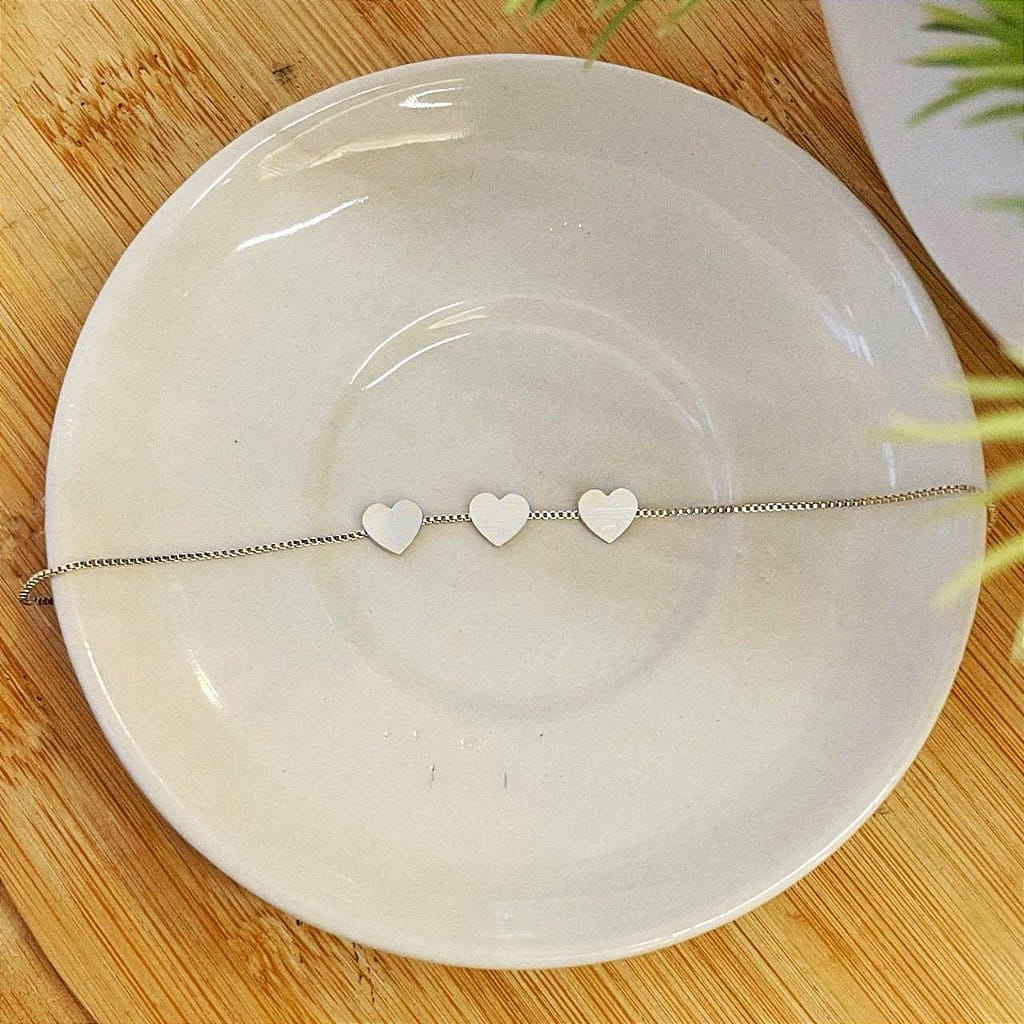 Pulseira Veneziana com 3 Corações Chapinha Steel