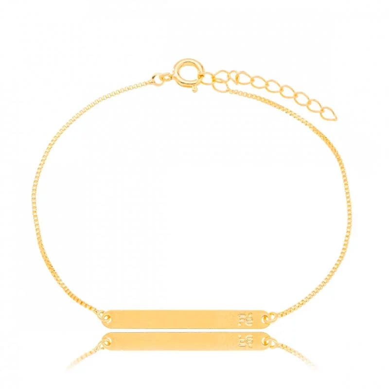 Pulseira Veneziana Placa Fé Folheado a Ouro 18K