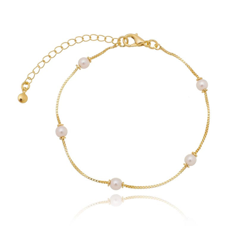Esta sofisticada pulseira veneziana apresenta cinco pérolas de 6mm, oferecendo um toque clássico e elegante ao seu visual. Folheada a ouro 18k, a pulseira é feita com materiais de alta qualidade, perfeita para quem busca um acessório refinado e versátil para qualquer ocasião.