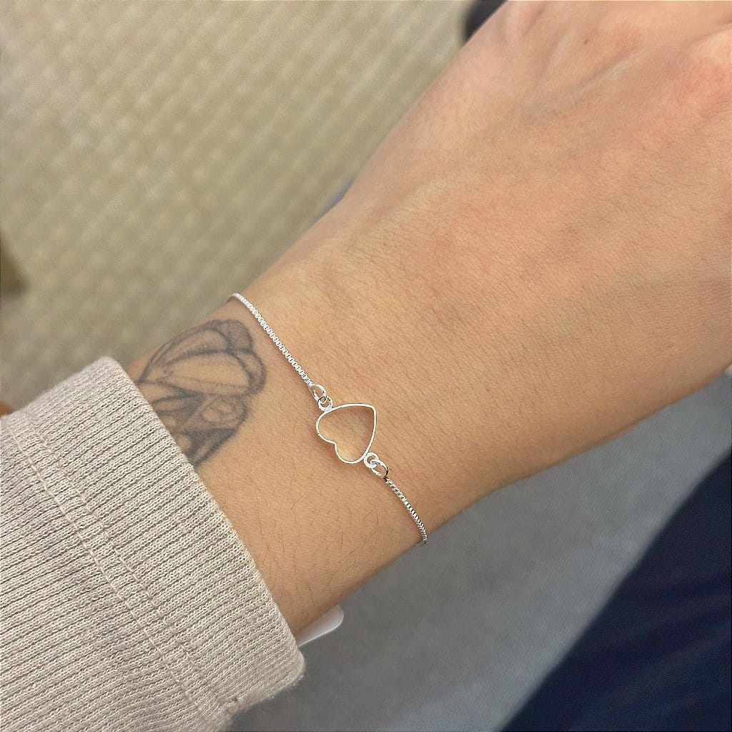 A Pulseira Veneziano Coração Vazado Fio Laminado, folheada a Ouro 18K, é uma peça de joalheria que combina delicadeza e sofisticação de maneira única. Com um design elegante que destaca um coração vazado e um fio laminado, esta pulseira oferece um visual romântico e contemporâneo, perfeito para qualquer ocasião.