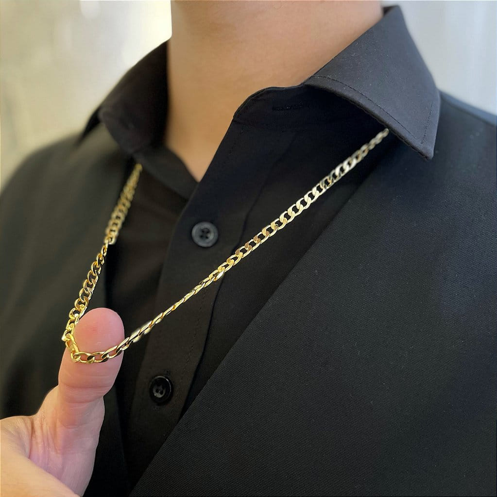 Corrente 60cm Grumet Laminada Folheado a Ouro 18k