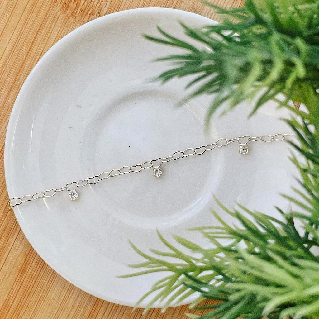 Tornozeleira Correntinha Coração Pingentes Zircônias Cristal Steel