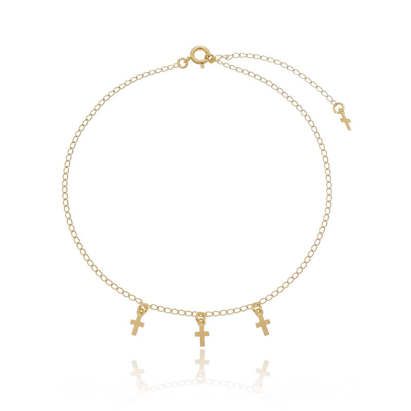 Tornozeleira Correntinha E Cruzinhas Folheado a Ouro 18K