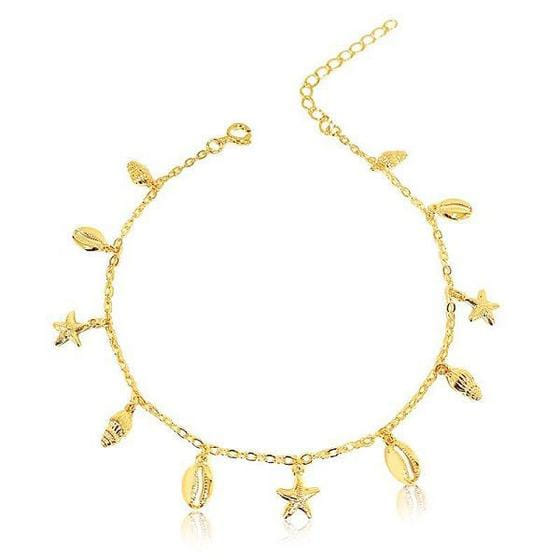Tornozeleira Pingentes Fundo Do Mar Folheado a Ouro 18K