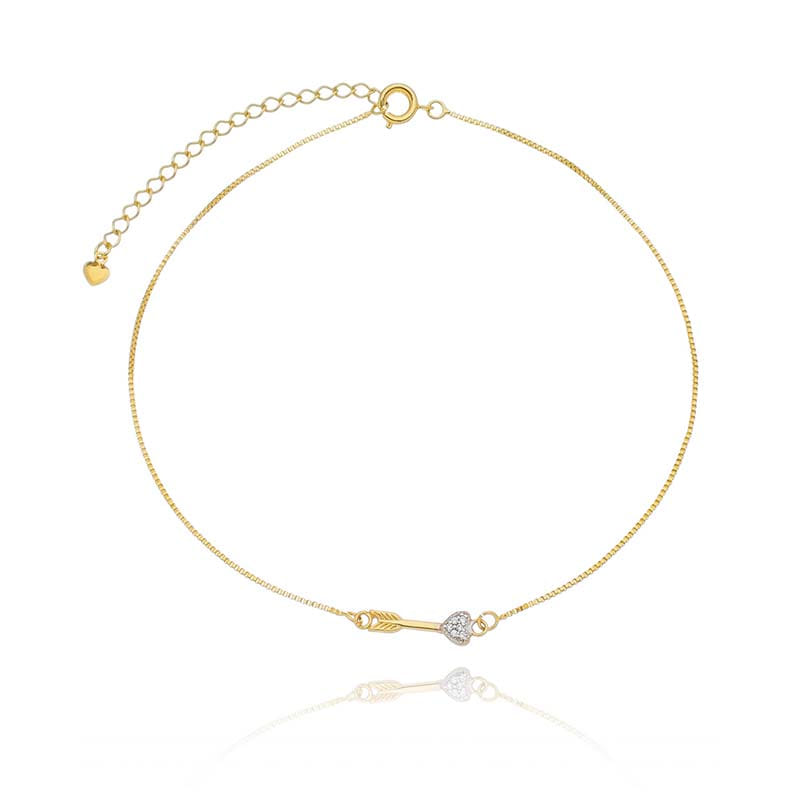 Tornozeleira Veneziano Setinha Coração Cravejado Folheado a Ouro 18K