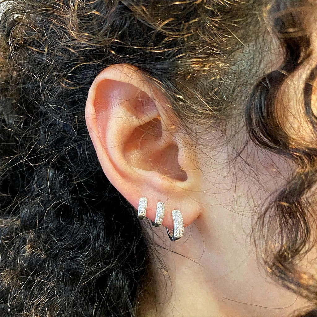 Trio de argolas Cravejadas 3 Fios Folheado a prata 925