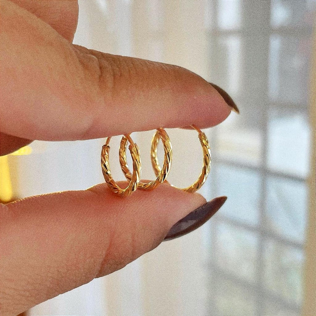 Trio de argolas Fio Tubo Enrolado Folheado a ouro 18K