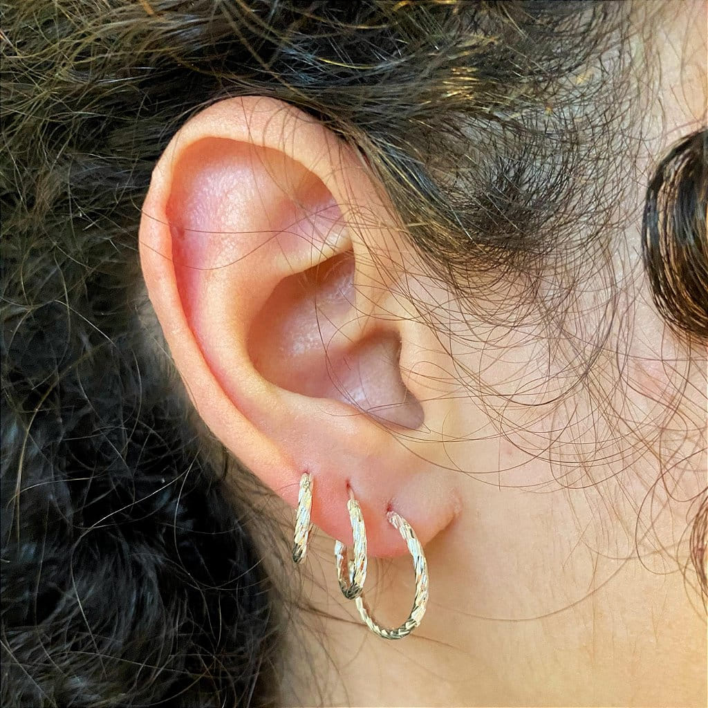 Trio de argolas Fio Tubo Enrolado Folheado a prata 925