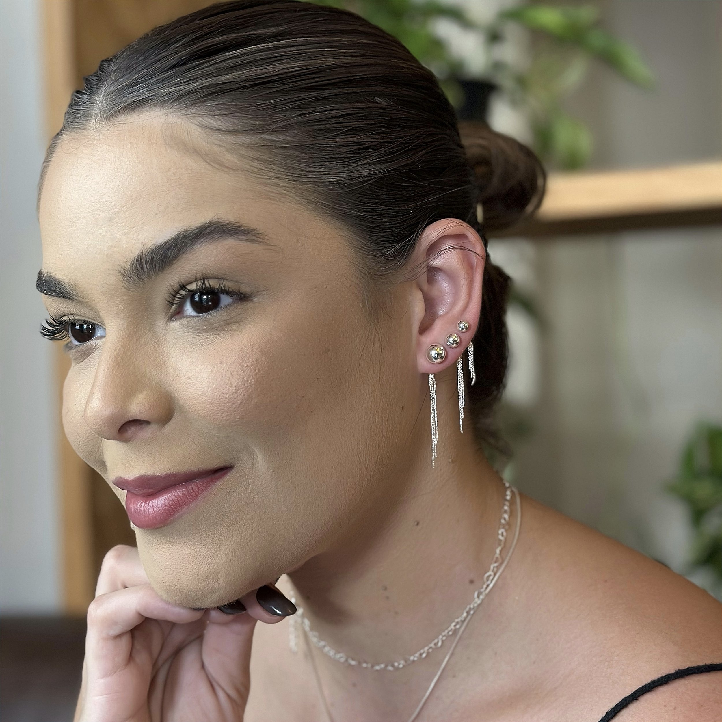 O Trio de Bolinhas com Franja Sem Bola, folheado a Prata 925, é um conjunto de joias que combina modernidade e elegância de maneira única. Com um design minimalista e sofisticado, este trio de brincos é perfeito para quem busca um acessório versátil que possa ser usado em diversas ocasiões.