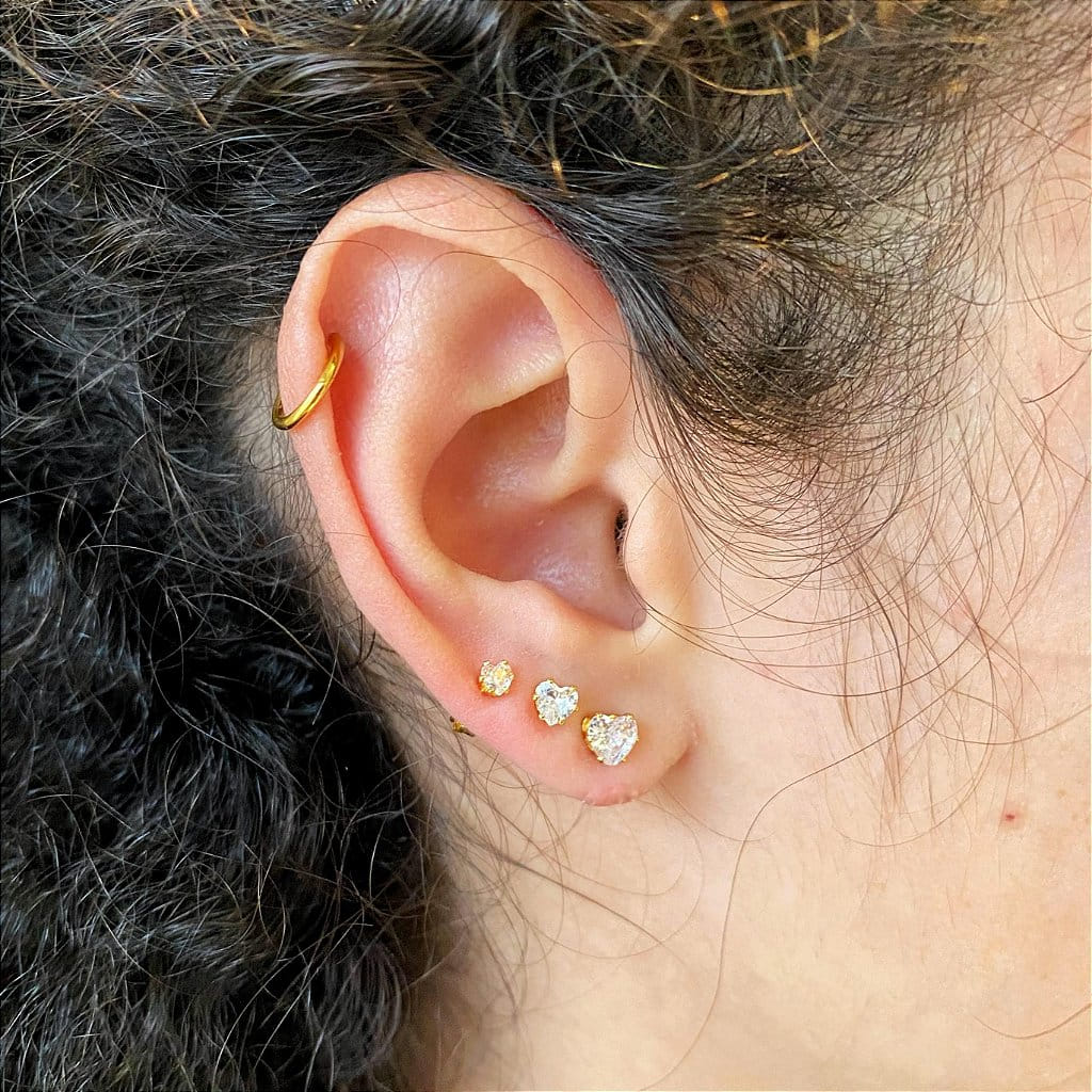 Trio de Ponto de Luz Coração Cristal Folheado a ouro 18K