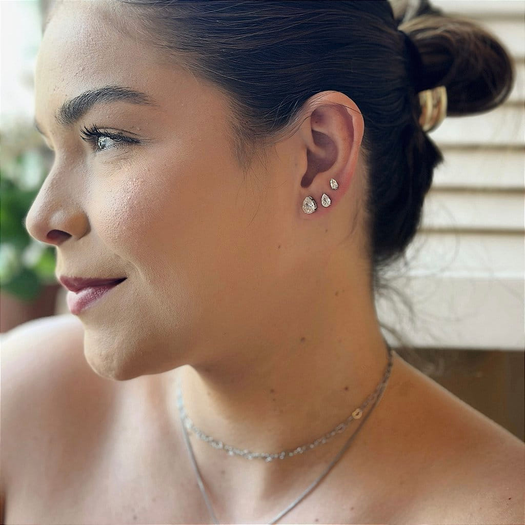 Trio de Ponto de Luz Gota Cristal Folheado a prata 925