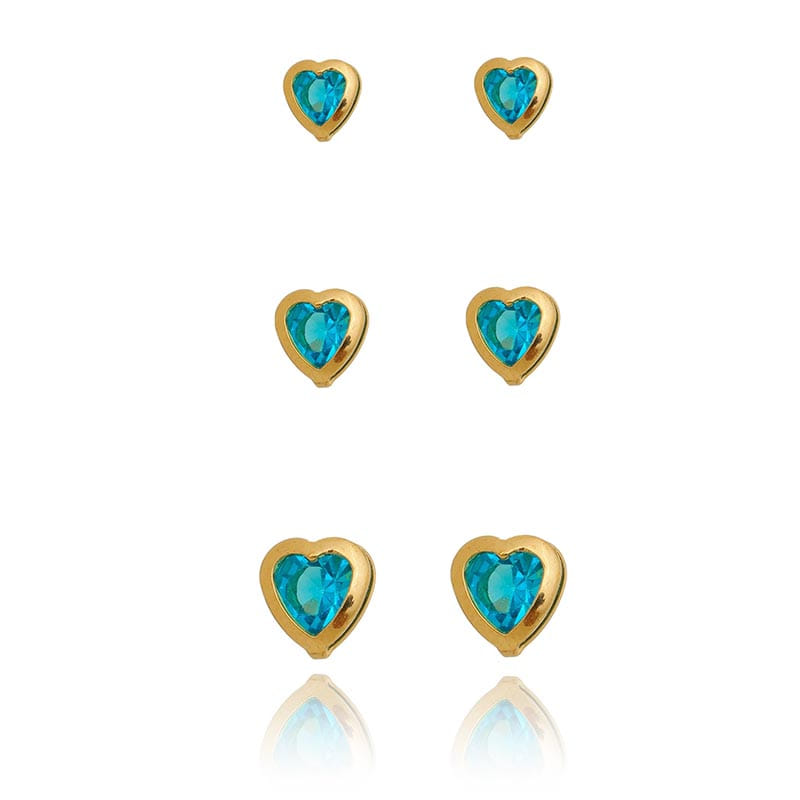 Trio Coração Azul Borda Folheado a Ouro 18K