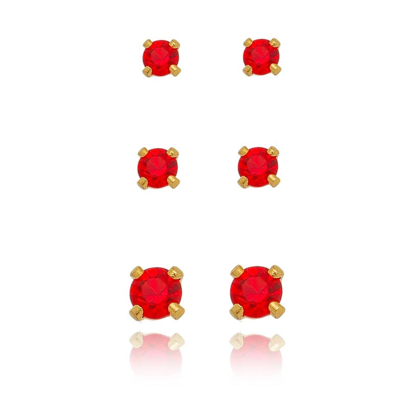Trio Ponto De Luz Vermelho Folheado a Ouro 18K